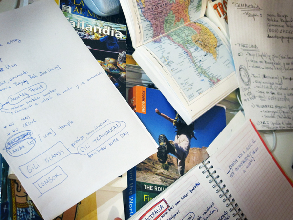 Buscar información en Internet de lugares y transportes, organizar la estancia de los primeros días en Goa gracias a Couchsurfing, hablar con amig@s viajer@s para que nos den ideas y consejos, subrayar guías, dibujar mapas, recopilar mil y un objetos super-útiles (desde cuerda para tender hasta pastillas para todos los males), ponernos nerviosos, dormir mal, ir a comidas/cenas/copas de despedida… Así han sido estos últimos días de preparativos.